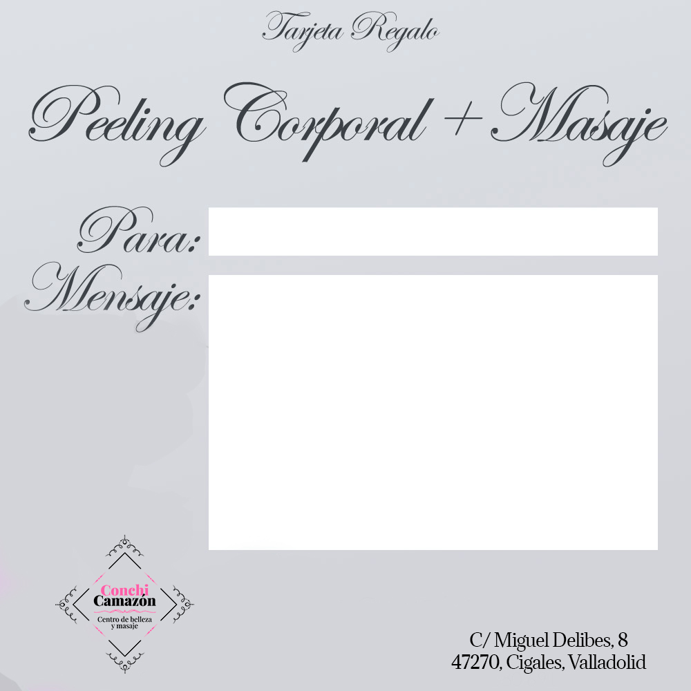 Tarjeta Regalo de Peeling Corporal + Masaje en Conchi Camazón Centro de Belleza y Masaje.